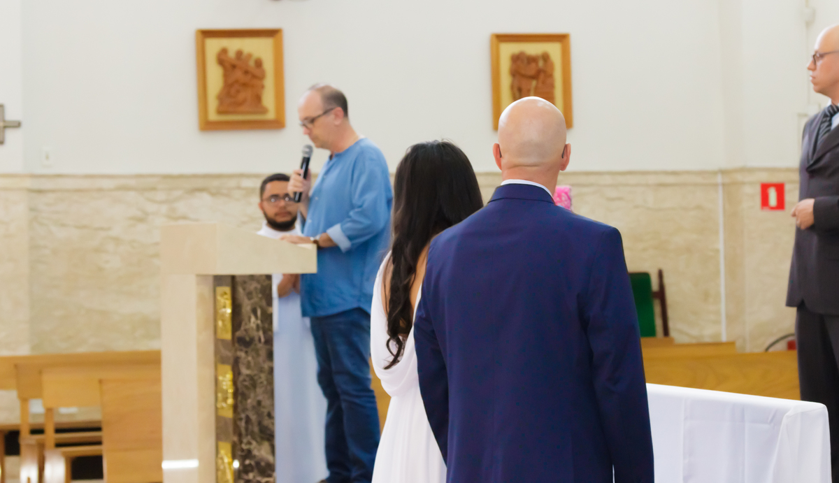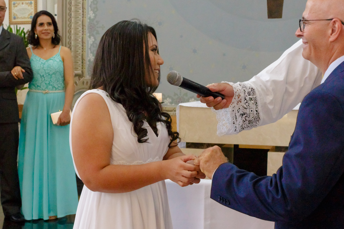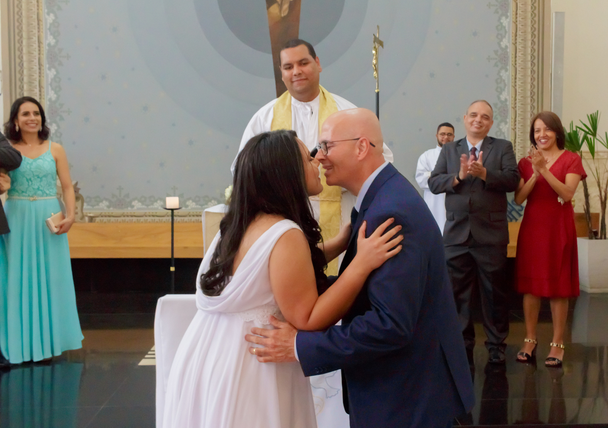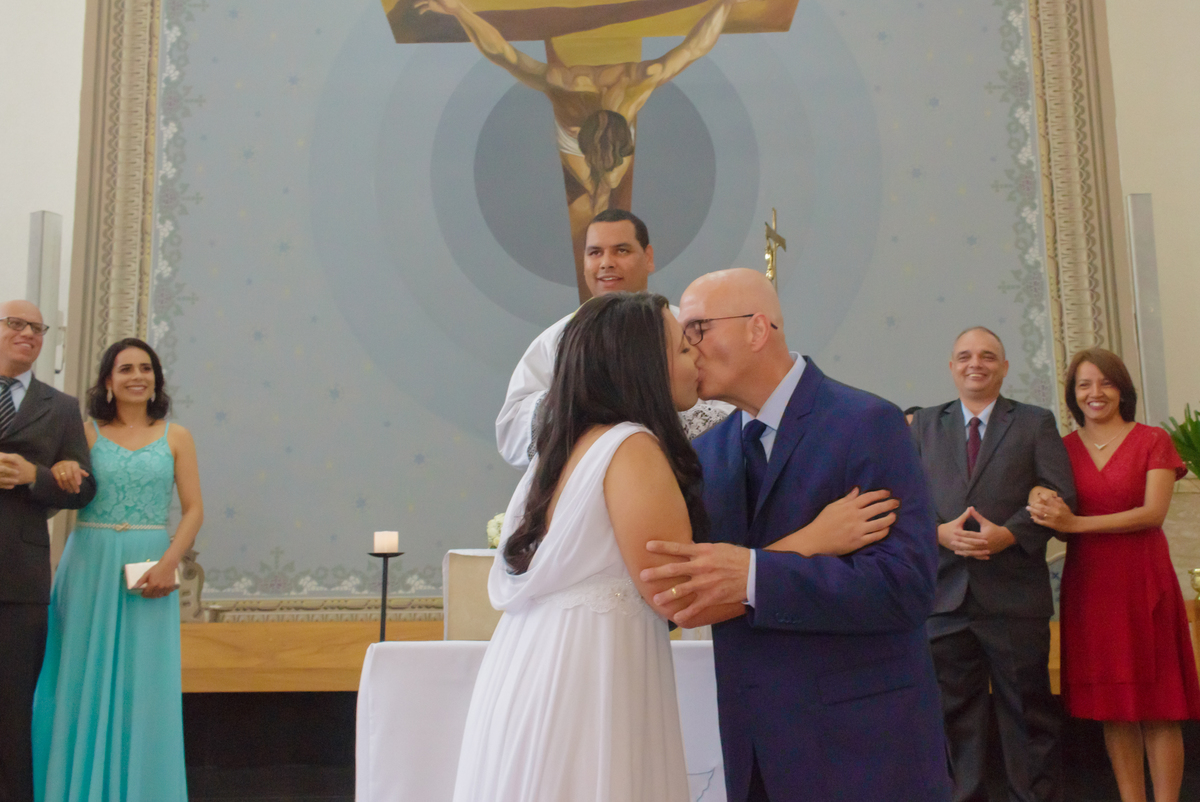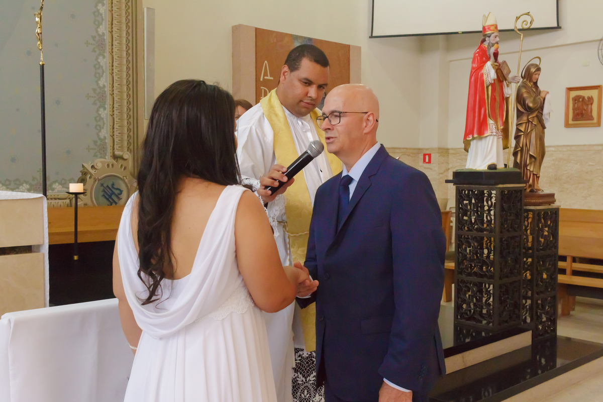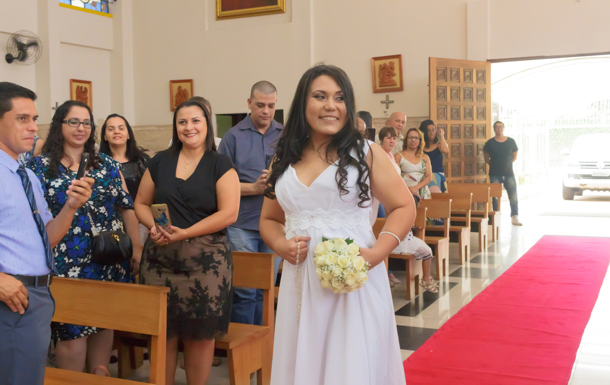 Casamento numa tarde de dezembro realizado na Paroquia Santa Rita de Cássia no bairro do Parque Novo Mundo em São Paulo, com pessoas amigas