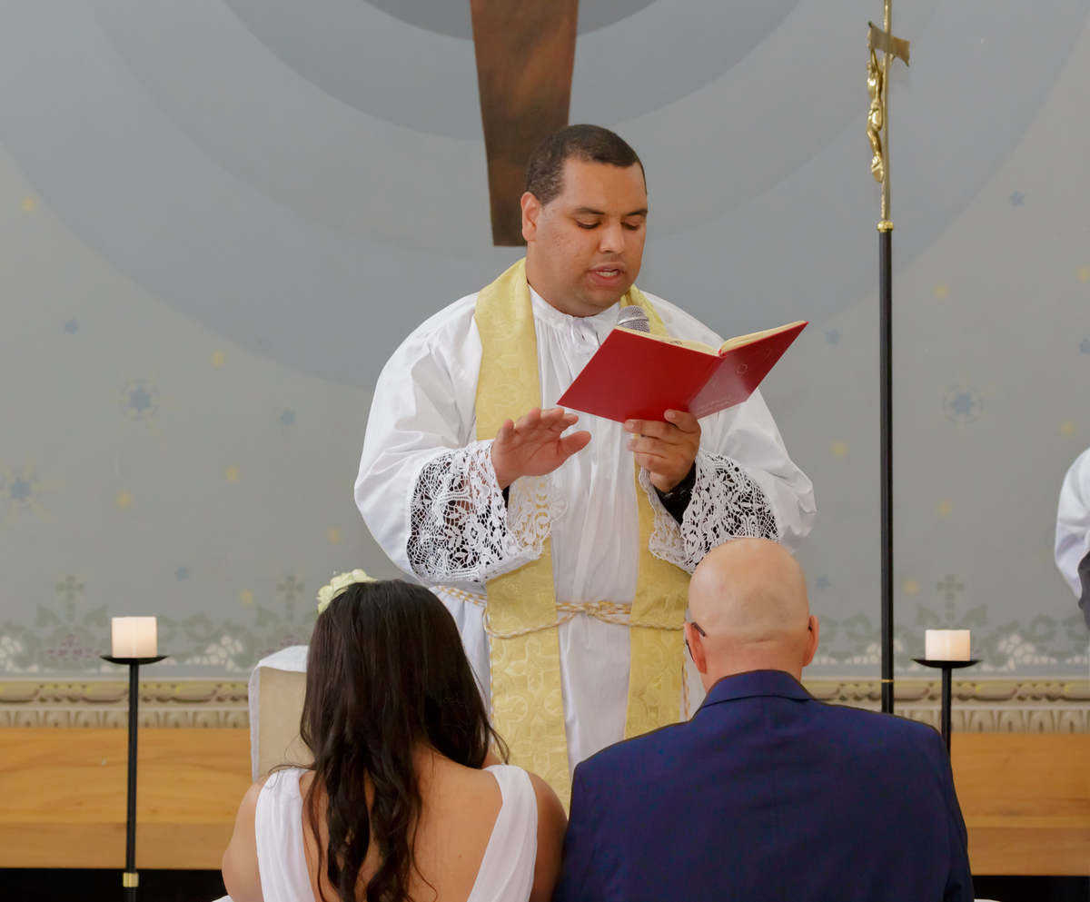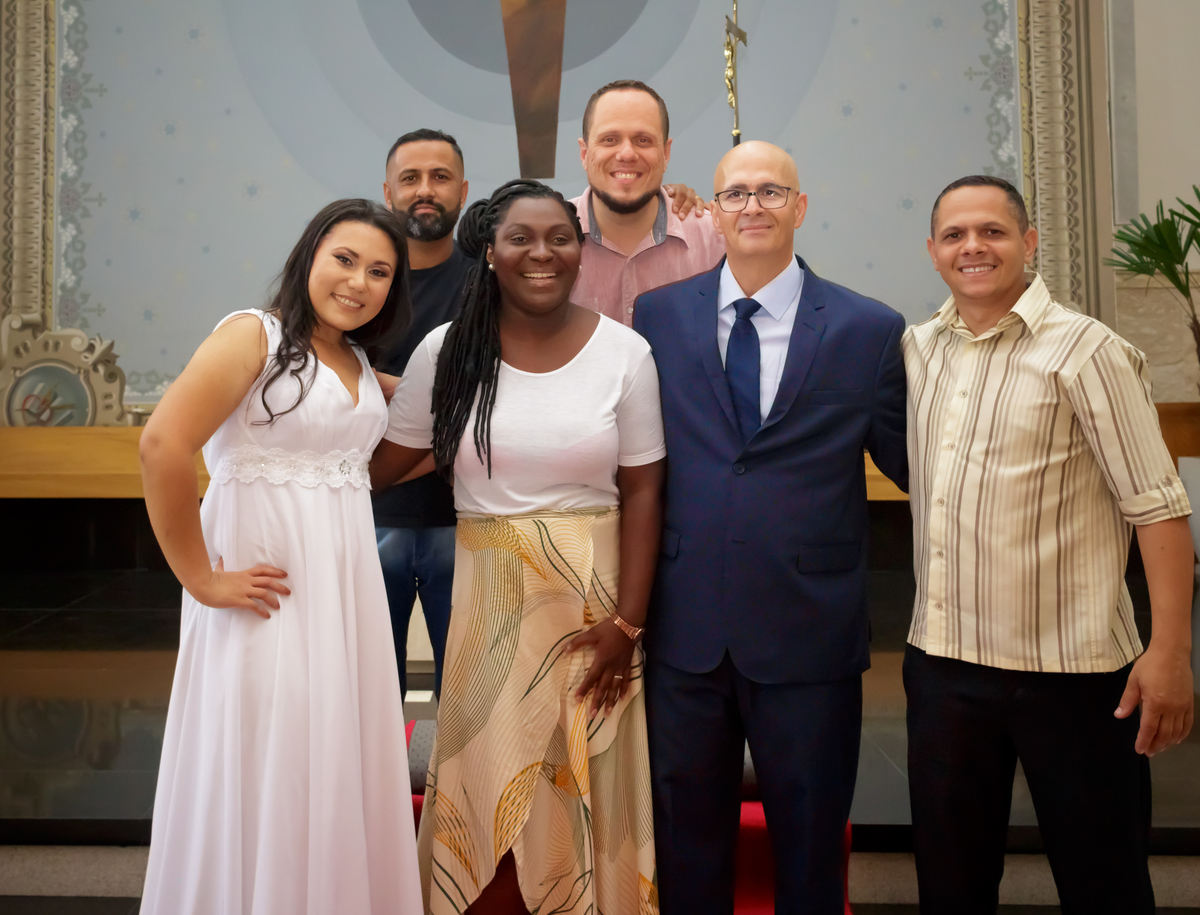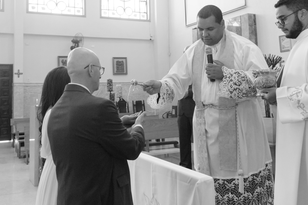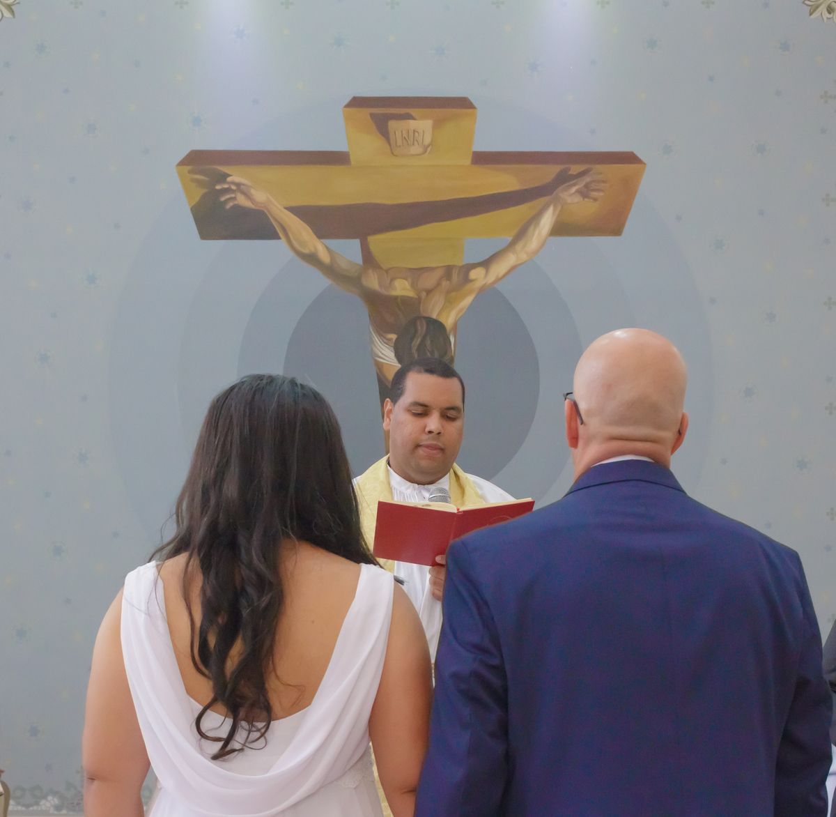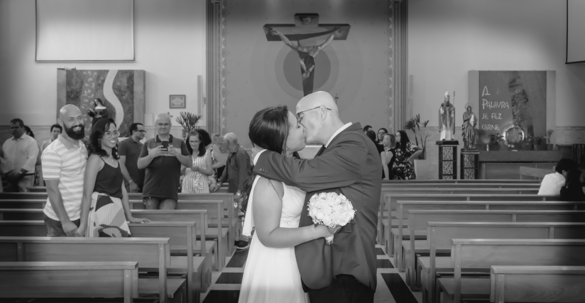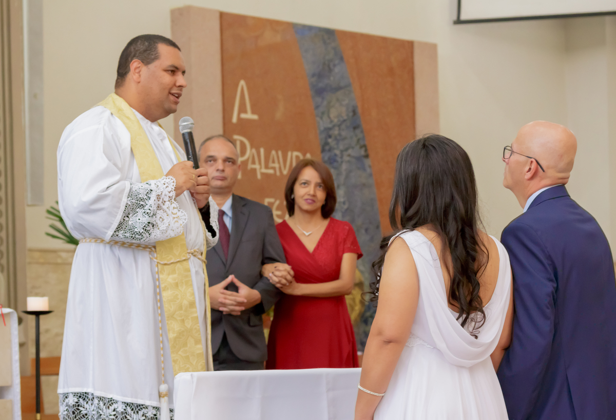 Casamento numa tarde de dezembro realizado na Paroquia Santa Rita de Cássia no bairro do Parque Novo Mundo em São Paulo, com pessoas amigas